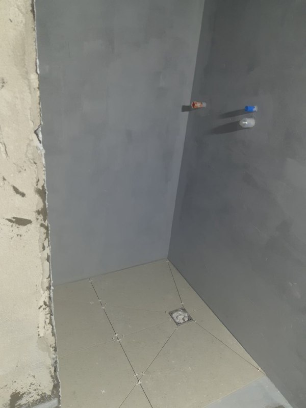 На фото - установленная и загидроизолированная система скрытого монтажа душа.