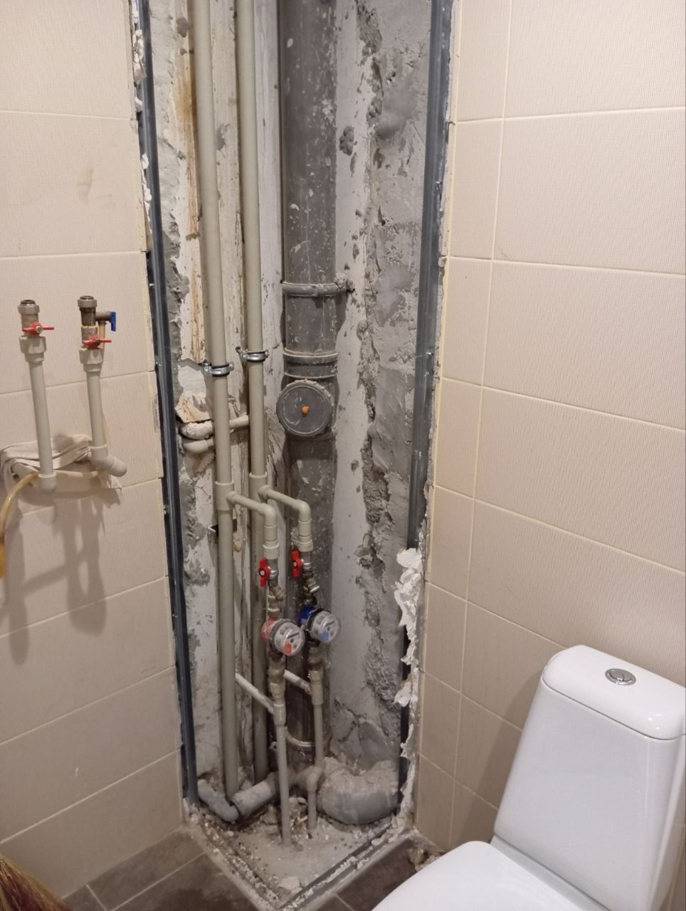 Сейчас же просто покажем результат замены стояка горячей и холодной воды с гнилых труб на пропилен.